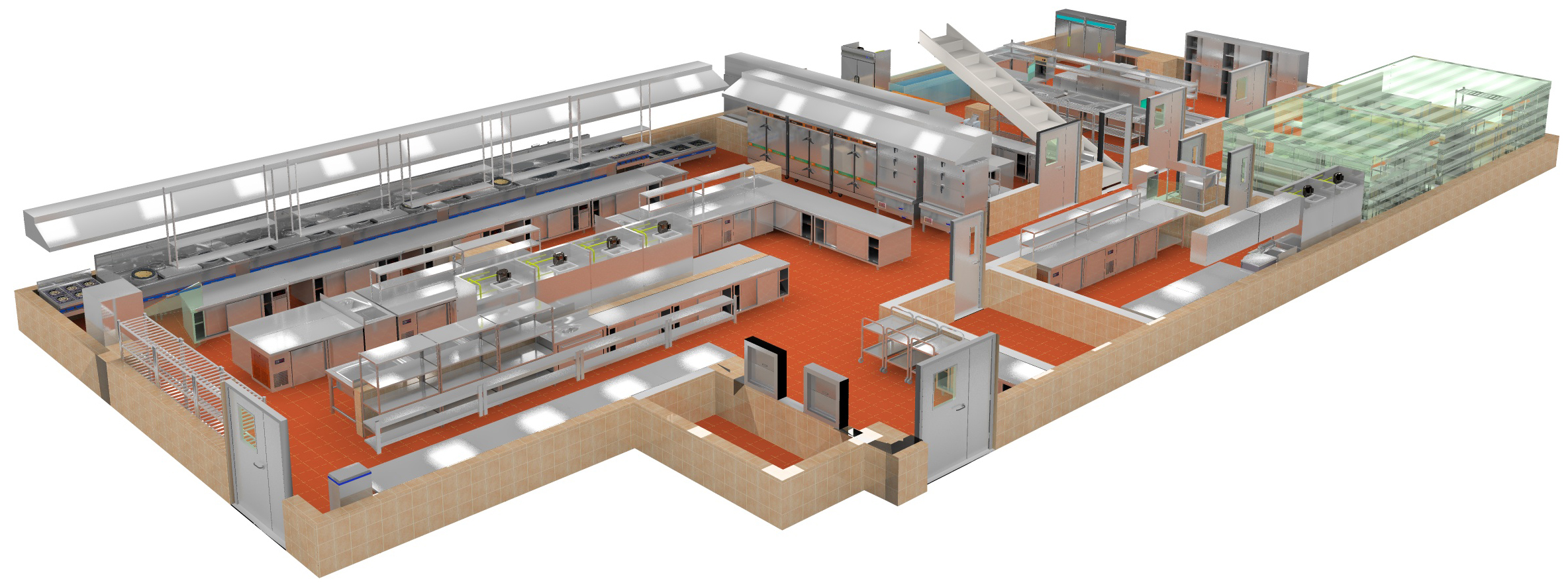 加工区 配菜、烹调区 点心区 冷菜(烧烤)制作区 冷菜出品区 厨师长办公室 |
