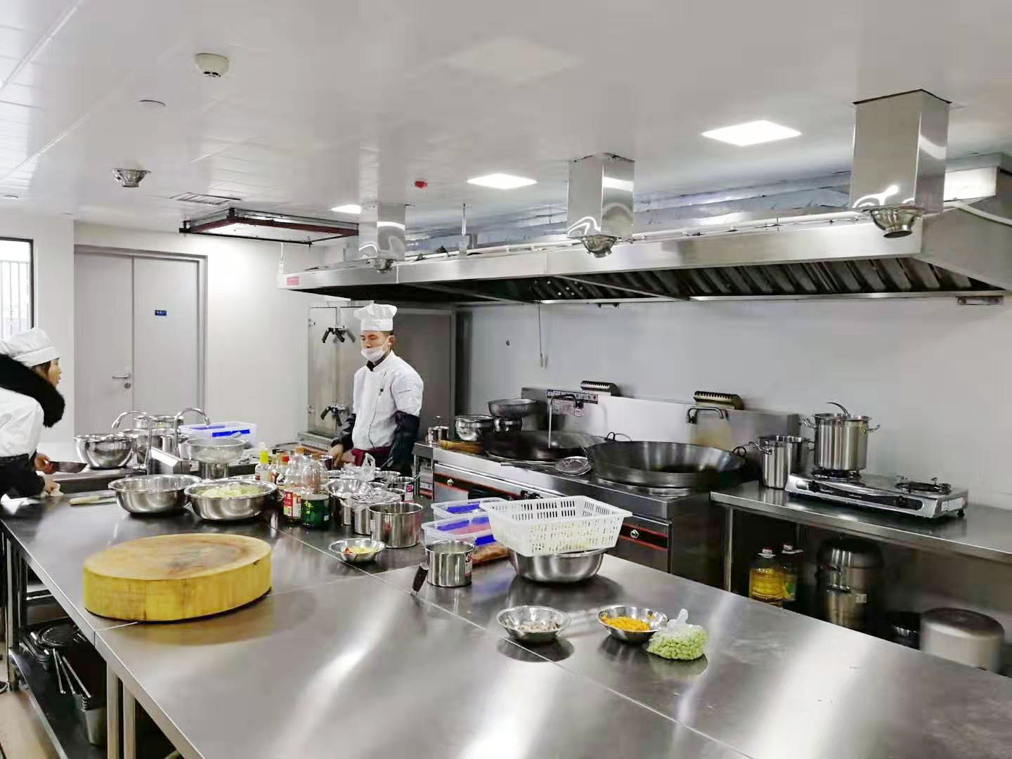 此间对新风的要求较低,但排风效果一定要好,否则,蒸汽将充满整个工作间,影响厨师工作,排气排出的主要是水蒸气,可以不采用和净化装置,直接排出。