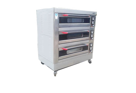 1、三层六盘电烤箱 通过400度温控设计,升温更快,大大提供烘焙速度。