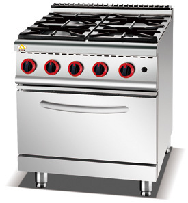 西式燃气连焗炉的构造:炉身由优质不锈钢制成,上部为铸铁炉头或黄铜炉头明火炉,下部为暗火烤箱,用高密度玻璃纤维包住如炉体内膛,用高密度玻璃纤维包住炉体内膛,能长时间保温。