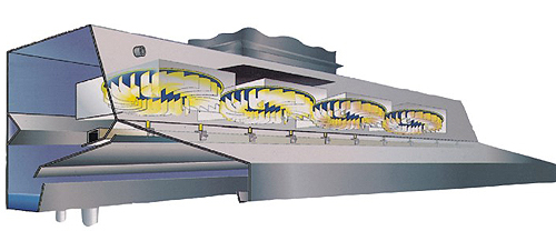 在风机叶片上设置特殊水雾化结构,在引风的同时,雾化洗涤液体,净化流经风机的油烟。由于雾化密度、粒度与转速相关,当风机转速较低时雾化效果下降,转速高时,雾化效果和净化效果要好一些。水循环需要水泵配合。对风机増加水循环结构,必须采用耐腐蚀材质,在风机前的管道内仍然有积油,消防的效果要差一点。在北方冬季室外运行存在设备防冻问题。