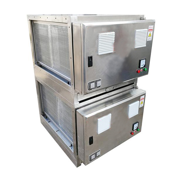 所以一般厂家都会建议2周到4周为一个清洗周期,静电油烟净化器配备了过滤装置,减少了杂物和大型颗粒进入电场。