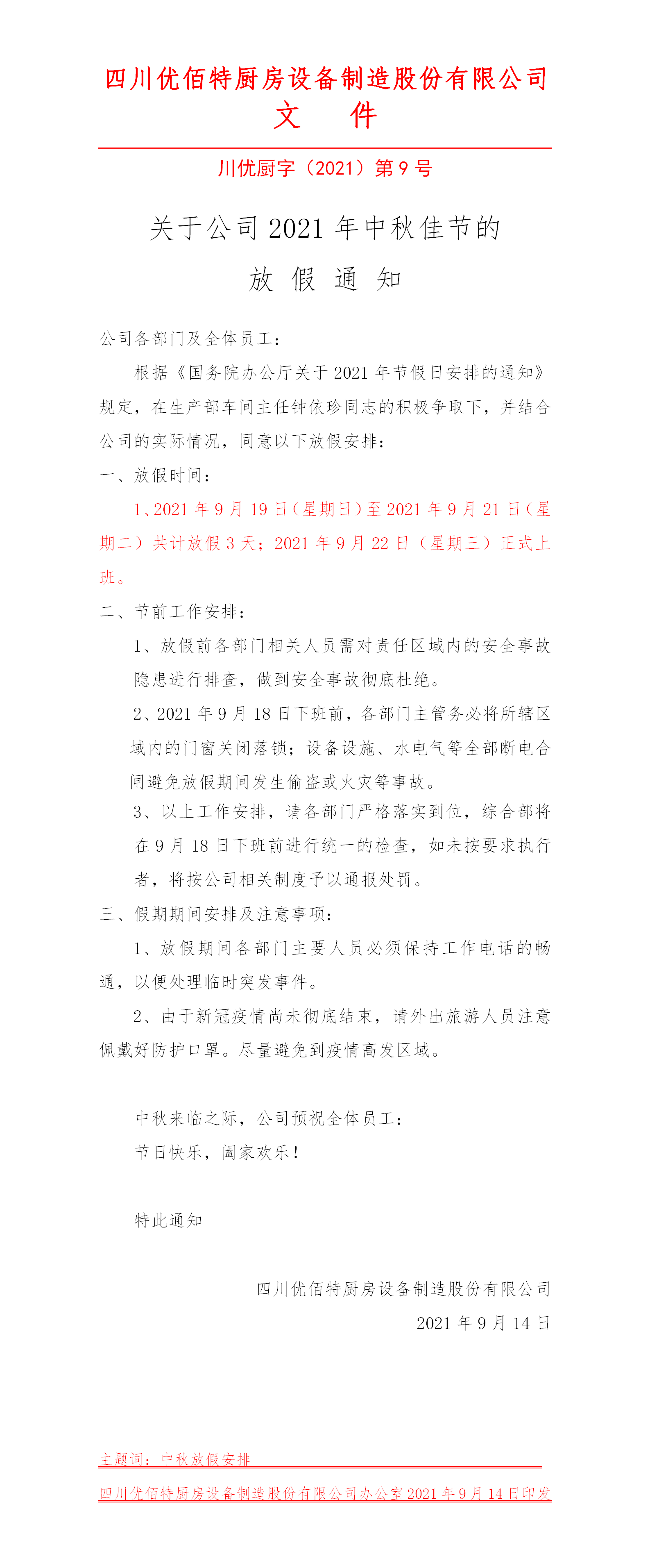 中秋佳节将至,为了迎接这个传统节日,我公司根据国务院放假要求,并结合自身实际情况做出如下放假安排: