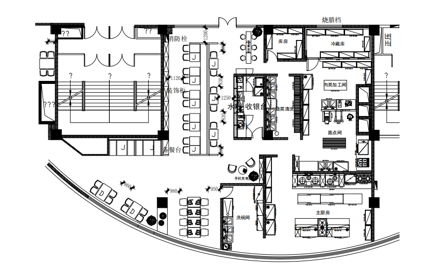 使用的灶具少,灶具主要是用大锅灶煮面、熬粥,只需一两眼炒灶用来制作主食配料,或用来煮零点的面条、饺子;使用的机械设备多,如和面机、压面机、包子机、菜焰机、搅拌机等;蒸、煮、烤、炸、煎设备用得多,蒸饭柜、夹层锅、烤箱、电炸 锅、电饼铛等;主食加工间与副食加工间特点不同,主食的米饭、馒头、包子、饺子等食品大多是批量制作,批量蒸煮生产。所以,除煎炸食品外,生制与熟制可以分开区域设置。熟制区需要出餐台,生制区需要机械设备、工作台、及原料运送,传餐通道要有一定的宽度,通道要设置合理。由于经营方式、餐品类别、加工工艺、出餐产量大小差异较大,主食加工间布局与饭店日皮视频APP苹果下载设计自有特点。