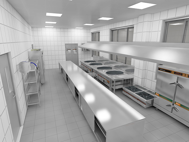 9.进菜、出菜、生熟、洗碗间干净的碗和脏碗各有通道,门一般1200-1500mm宽;