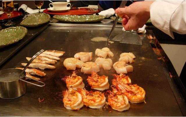 日式铁板烧是日本料理中最高级别的就餐形式,它不同于中餐的烧烤和韩国烧烤,吃日式铁板烧是财富和地位的象征。铁板烧是将食材直接放在热铁板上炙烤成熟,这些食材事先不能腌制加工,而是通过高热的铁板快速烹调成熟以保留其本身的营养和味道。由于食材事先不能腌制加工,所以它对原材料的要求是相当高的,比如西冷牛肉、菲力牛肉、牛仔骨、银鳕鱼、带子、鹅肝等等。