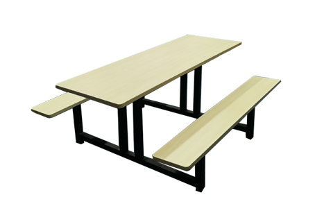 六人连体餐桌面板采用多层板制作,表皮贴有防火材料,颜色为远古橡木,经久耐用,安全,防火,适用于大型快餐店、单位食堂,员工食堂等。
