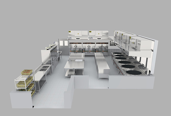 (1)排烟排气设备的位置设置不合理,增加了管道长度、增加了排烟风阻,增加了能耗; 不同工作时间段的设备安排在同一个排烟罩下,增加了排烟风机的工作时间。