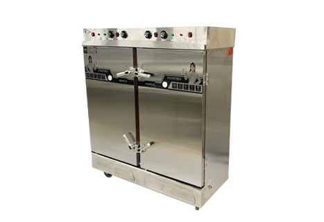 电热蒸汽两用蒸饭柜采用新颖独特的设计款式、全不锈钢机体,外形豪华、美观。选用名厂电气元件,节能、安全、操作简便。具备电热、蒸汽两用功能,广泛适用于工厂、学校、机关、部队、宾馆、饭店等企事业单位,供蒸制米饭、馒头、包子及鱼、肉制品等各类食品,并可作为餐具、茶具消毒等多种用途,是理想的多功能饪设备。