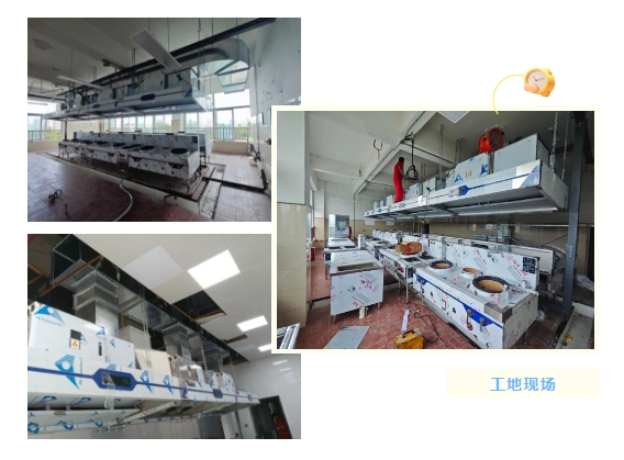 在设备都搬运完毕之后,工地上又开始热闹起来、忙起来,焊机、铁锤、电钻都开始动起来了。安装师傅们在现场大展拳脚,各显神通,忙着切割材料、安装、焊接设备以及连接水电气。经过几个小时的忙活之后,一个完整的商用后厨就初具规模了,再经过一番修整,撕完膜后就能够交付客户使用了。
