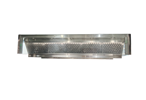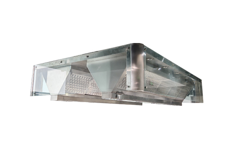 新款明档烟罩是我公司最近几年研发的新产品,造型独特美观,噪音低,吸烟效果好,超强度玻钢材质,适合高档餐厅和酒店使用。