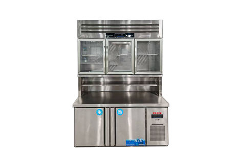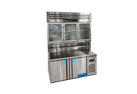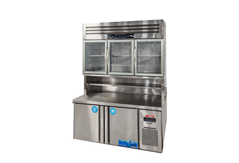 平台冷台柜全不锈钢机身,台柜一体设计,空间大,玻璃门,可存储更多物品,可用于奶茶店、火锅店、串串店以及高级餐厅食堂等。