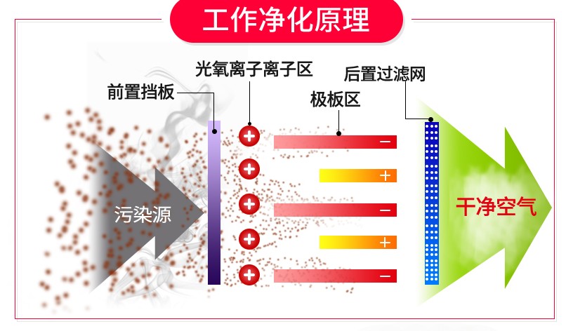 电场的设计使油烟粒子的运动速度较低,一般在零点几秒内便能使油烟粒子荷上足够的电荷,带电粒子在电场中会受到电场力(库仑力)的作用,其结果是油烟粒子被吸附到阳极上。因此电除油烟的除油烟率非常高,而且特别适用于捕捉粒径较小和重量较轻的油烟粒子.