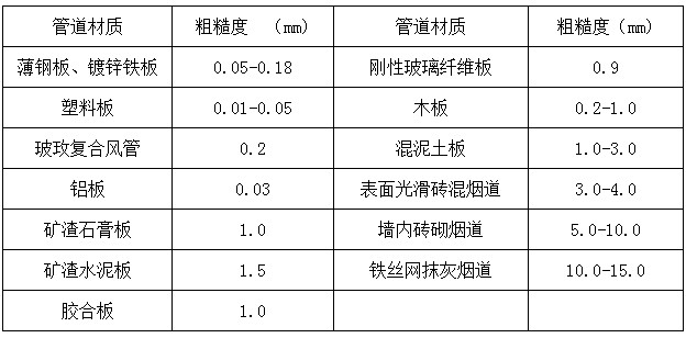 不同材质的管道内壁的绝对粗糙度系数见下表、